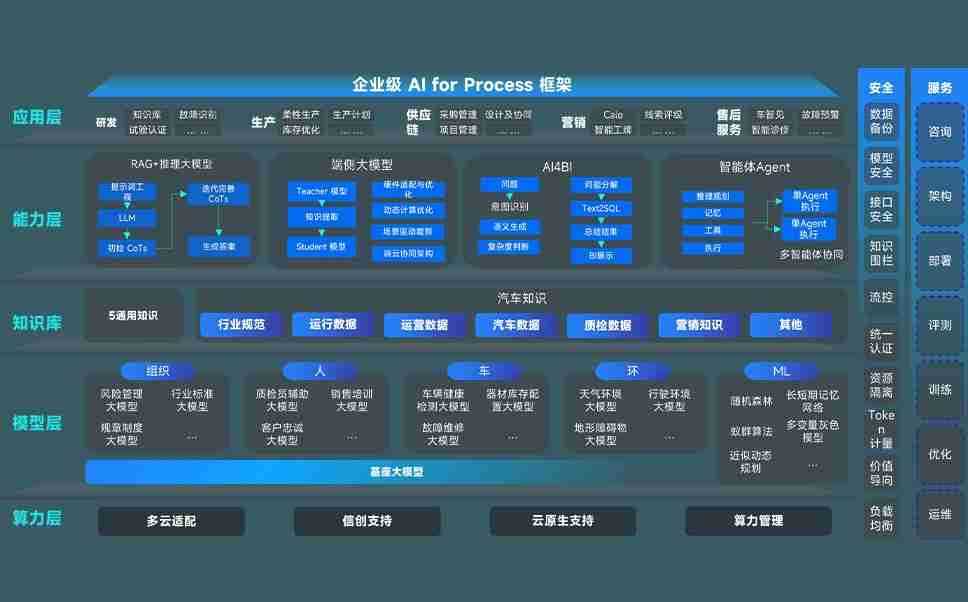 PG娱乐问学智车解决方案是一套基于AI技术的汽车行业智能化系统,,,,覆盖从底层算力到顶层AI应用的全栈方案。。方案由算力层、、模型层和应用层组成:算力层,,,,方案支持多种一体机配置,,,具备云端灵活部署、、多云适配以及动态优化计算资源的能力;模型层,,,PG娱乐问学平台版提供了企业级AI应用一站式构建与管理平台,,,,支持基于后训练强化技术的汽车企业专属模型的训练、、评测和运营;应用层,,,,PG娱乐问学DeepSeek版提供包括超级员工、、、智能招采、、、智能营销、、、智能客服、、、、AI for BI等一系列解决方案,,,,可助力汽车行业实现数字化转型,,,让管理更智能、、、响应更敏捷。。。